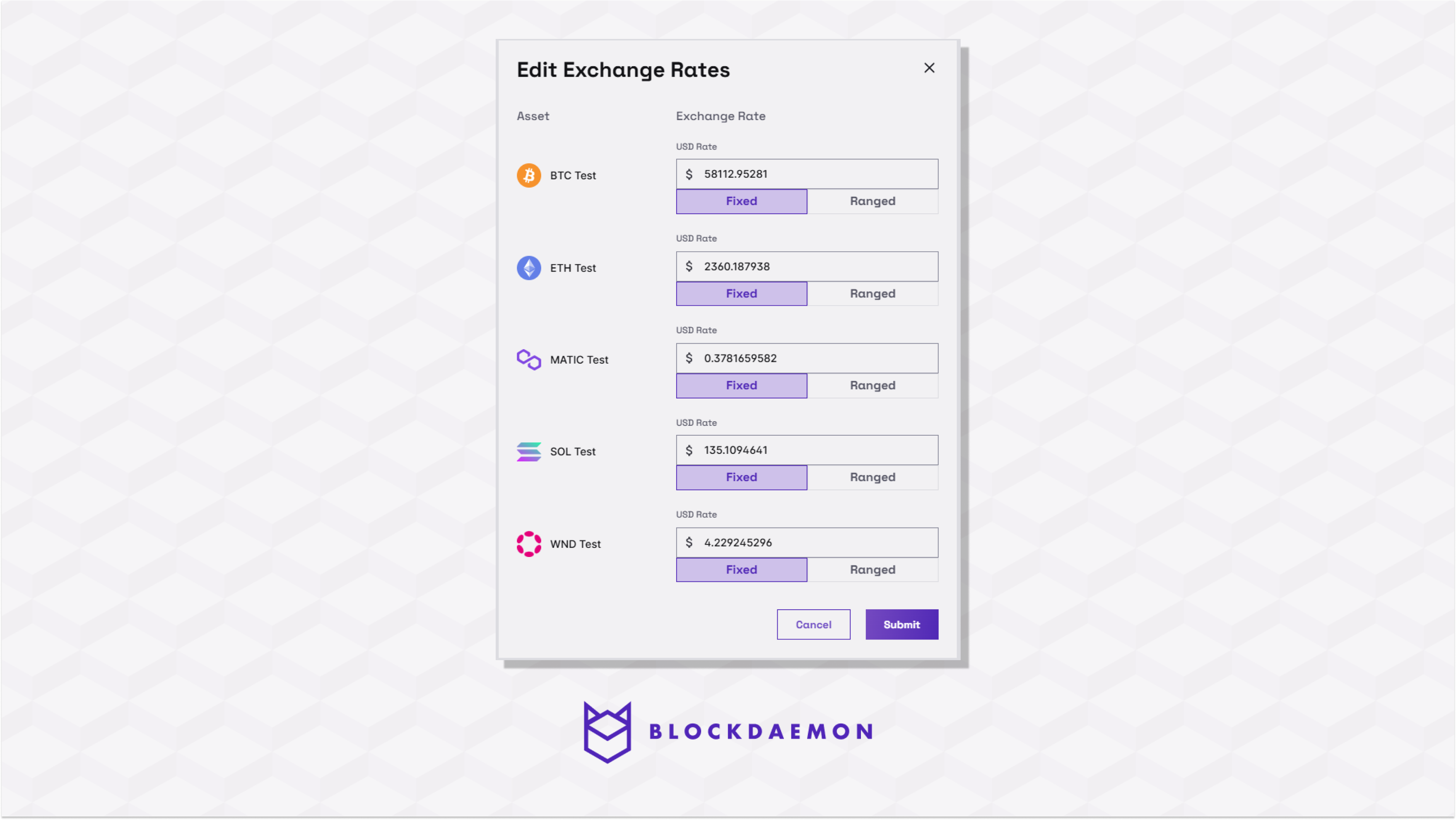 As a security measure, it's essential to specify an acceptable range of exchange rates or a fixed rate. As long as third-party services provide rates falling within this defined acceptable range, transaction policies will utilize these rates to determine the necessary authorization level. The Institutional Vault will prevent the corresponding transaction from proceeding if the reported rates surpass your acceptable range. In cases where the rate is set as fixed, it will be applied regardless of the actual market value of the asset.