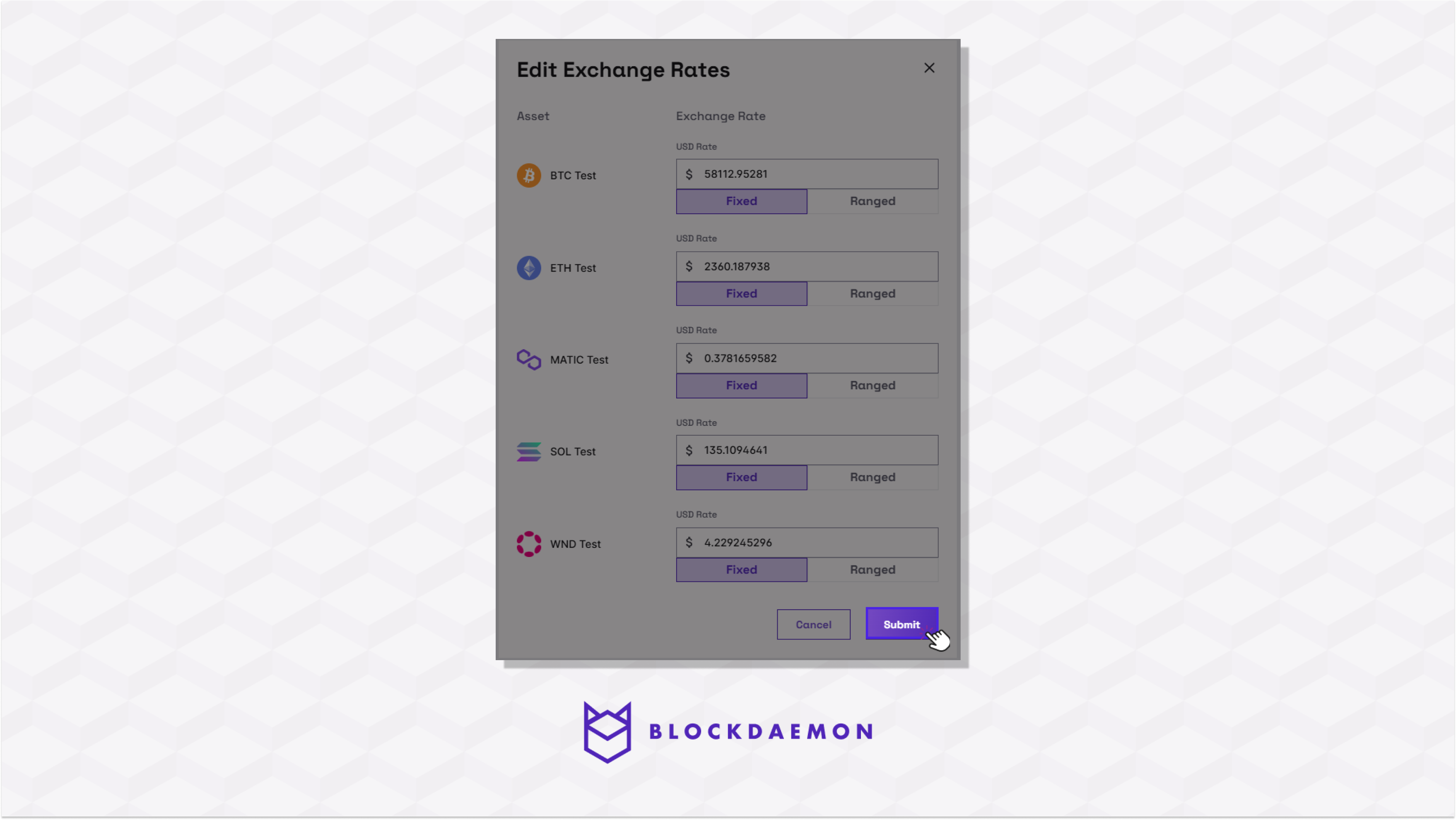 - Click Submit to confirm to change the exchange rates.