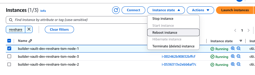 - After uploading, restart each node via the EC2 console by navigating to the corresponding EC2 instance. Select Instance State -> Reboot Instance.