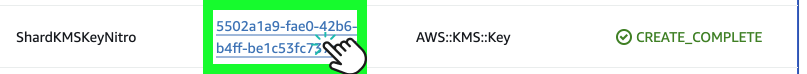 ShardKMSKeyNitroresource, which secures the Nitro envelope encryption key. Adjust the policy to enable debug mode for the node. - Click on the Link to navigate to the specific KMS key.