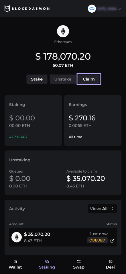 Follow these steps to claim your ETH with the Earn Widget.