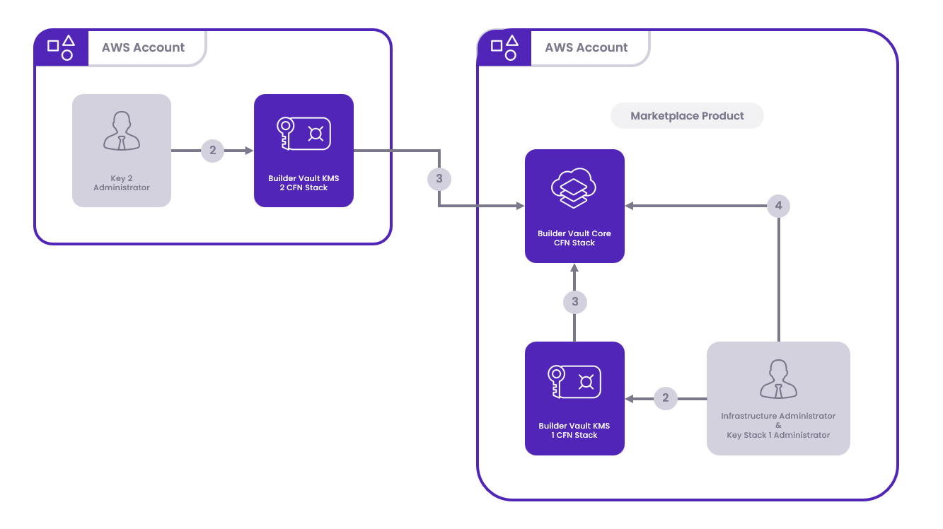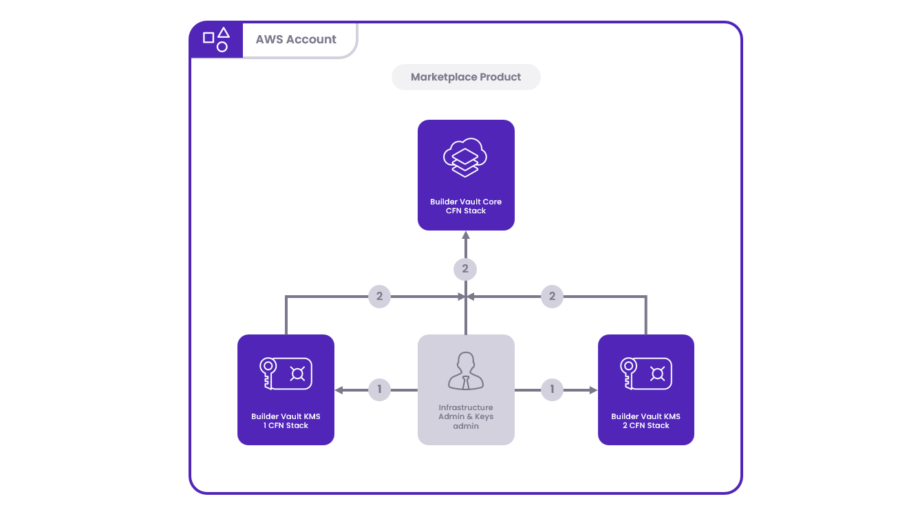 - Account Selection: Decide which AWS account will be used to deploy the Builder Vault Core. Share the selected account's ID among all parties. The KMS Stack input parameter will utilize this Account ID to indicate the deployment's location.