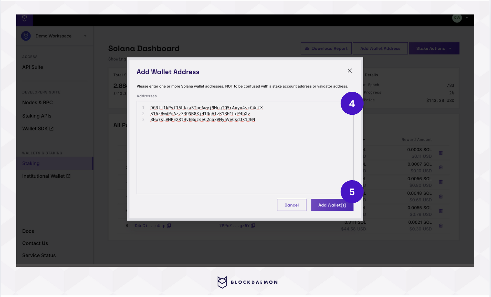 Discover how easy it is to add wallets to the Blockdaemon Solana Dashboard.