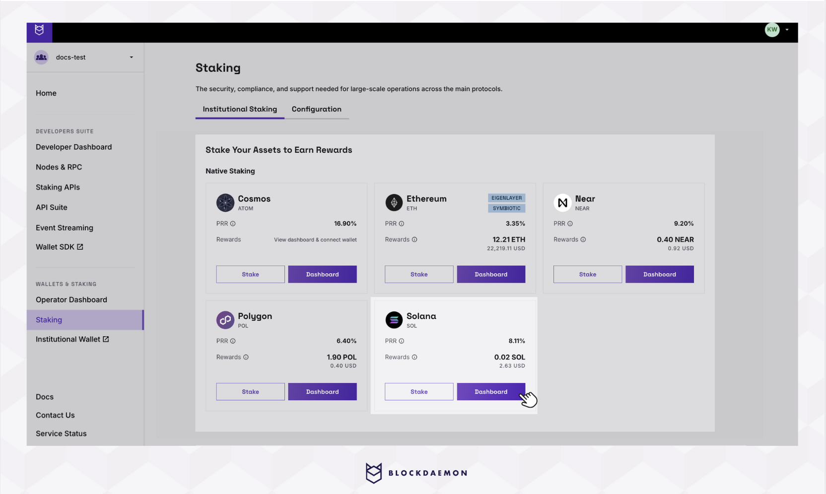 To add wallets to the Solana Dashboard, access your Blockdaemon account and follow these steps: