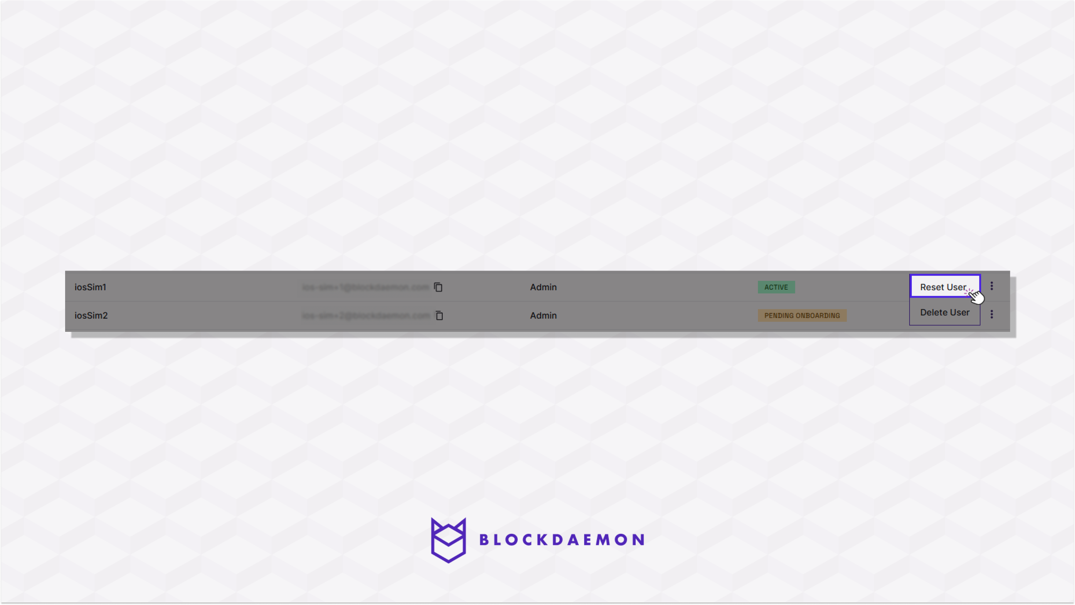 This operation can also reset a user whose phone was lost since they cannot add themselves to the system. They require assistance from an administrator to reset and re-register their wallet account. This is the reset procedure for a user who has lost their phone: