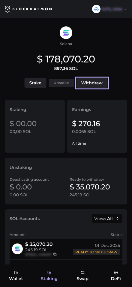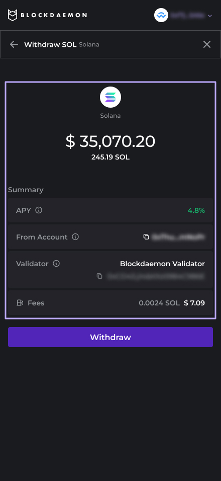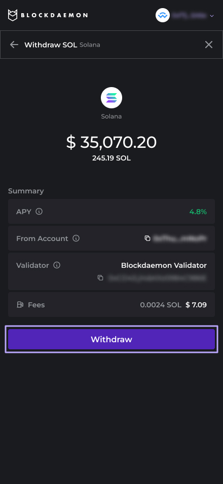 Follow these steps to withdraw your SOL with the Earn Widget.