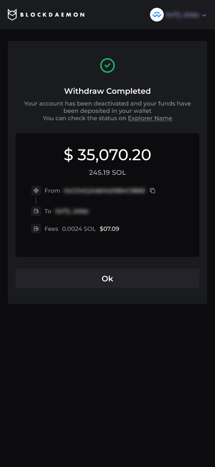 Solana: Withdraw