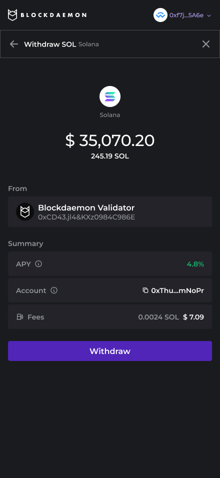 Withdrawing is always step two in the Solana sequence: Stake → Unstake → Withdraw, and is typically fast or near-instant.