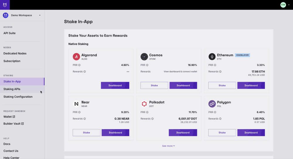 NoteYou can find your previously created keys on the Staking APIs page. Hover over the "API Key" column next to the key name to copy, create, or delete keys.