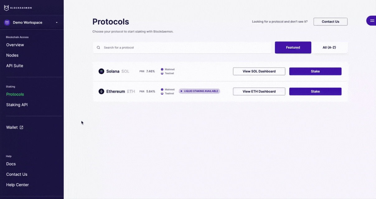 After accepting the staking configuration, log into your Blockdaemon app to create a new API key.