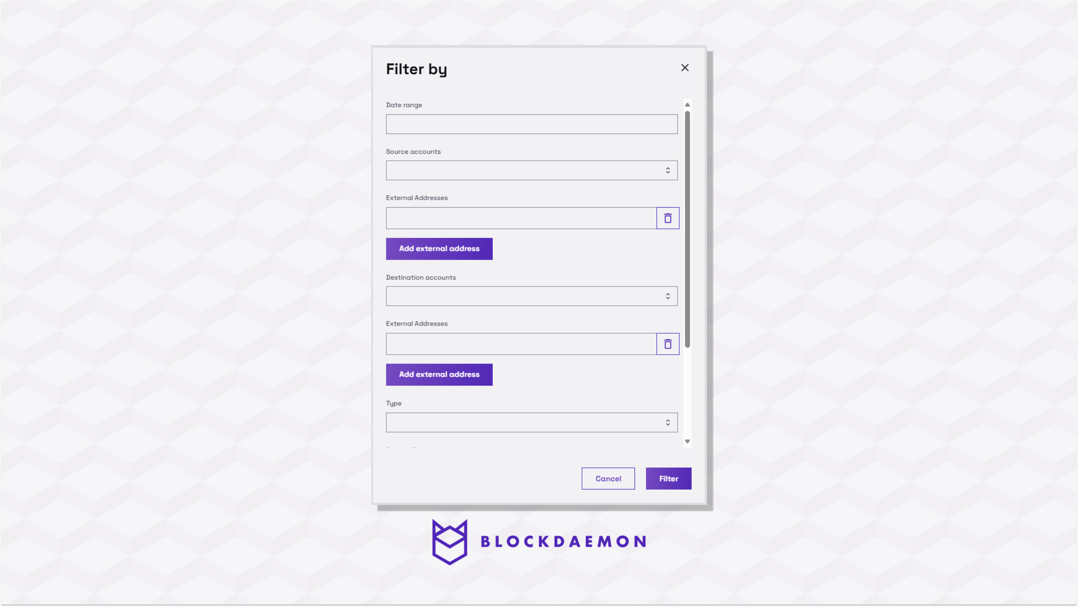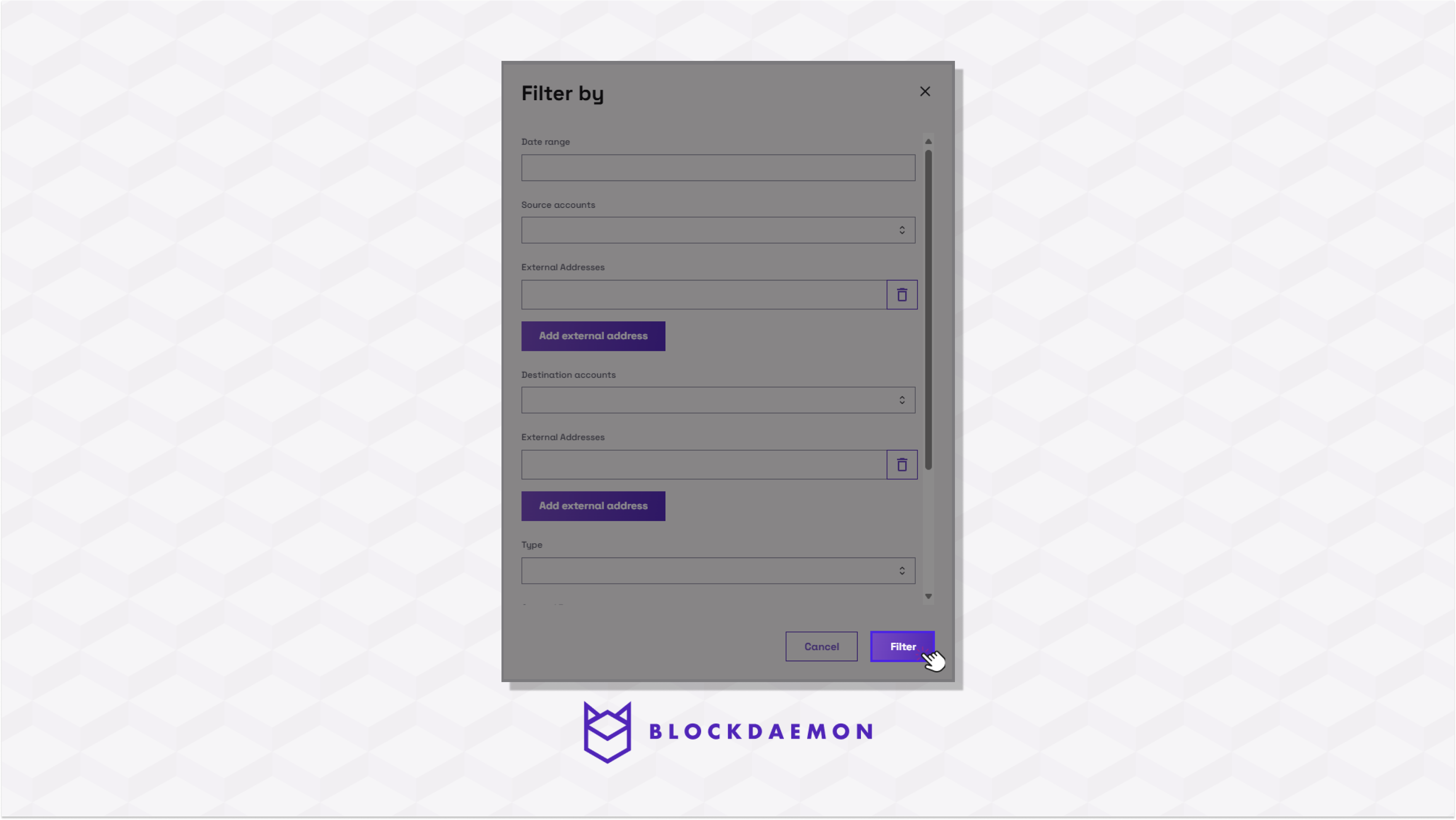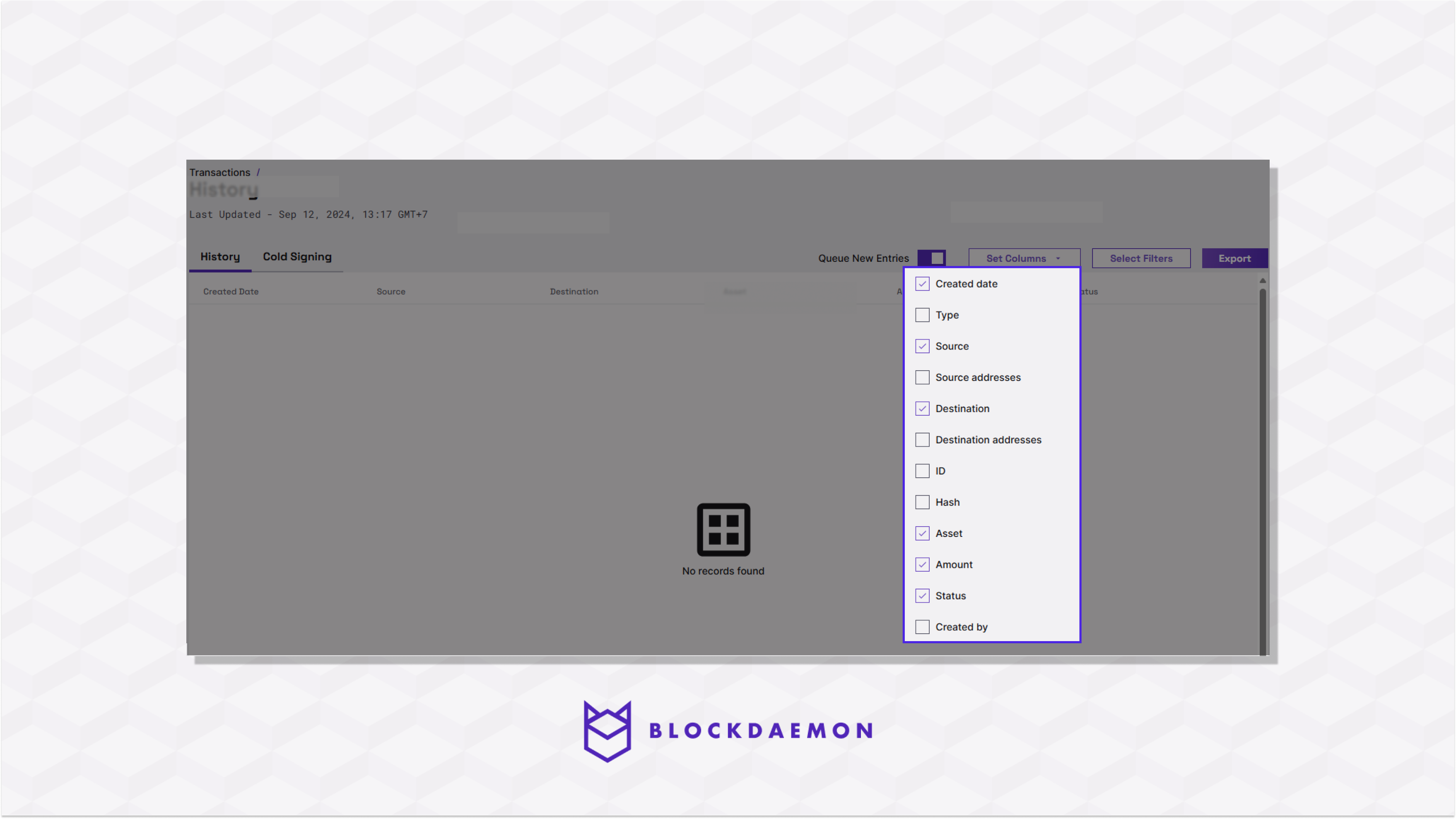 Under the Transaction History, you may examine every received or initiated transaction in the Institutional Vault. The history is shown in a table that may be filtered according to your needs.