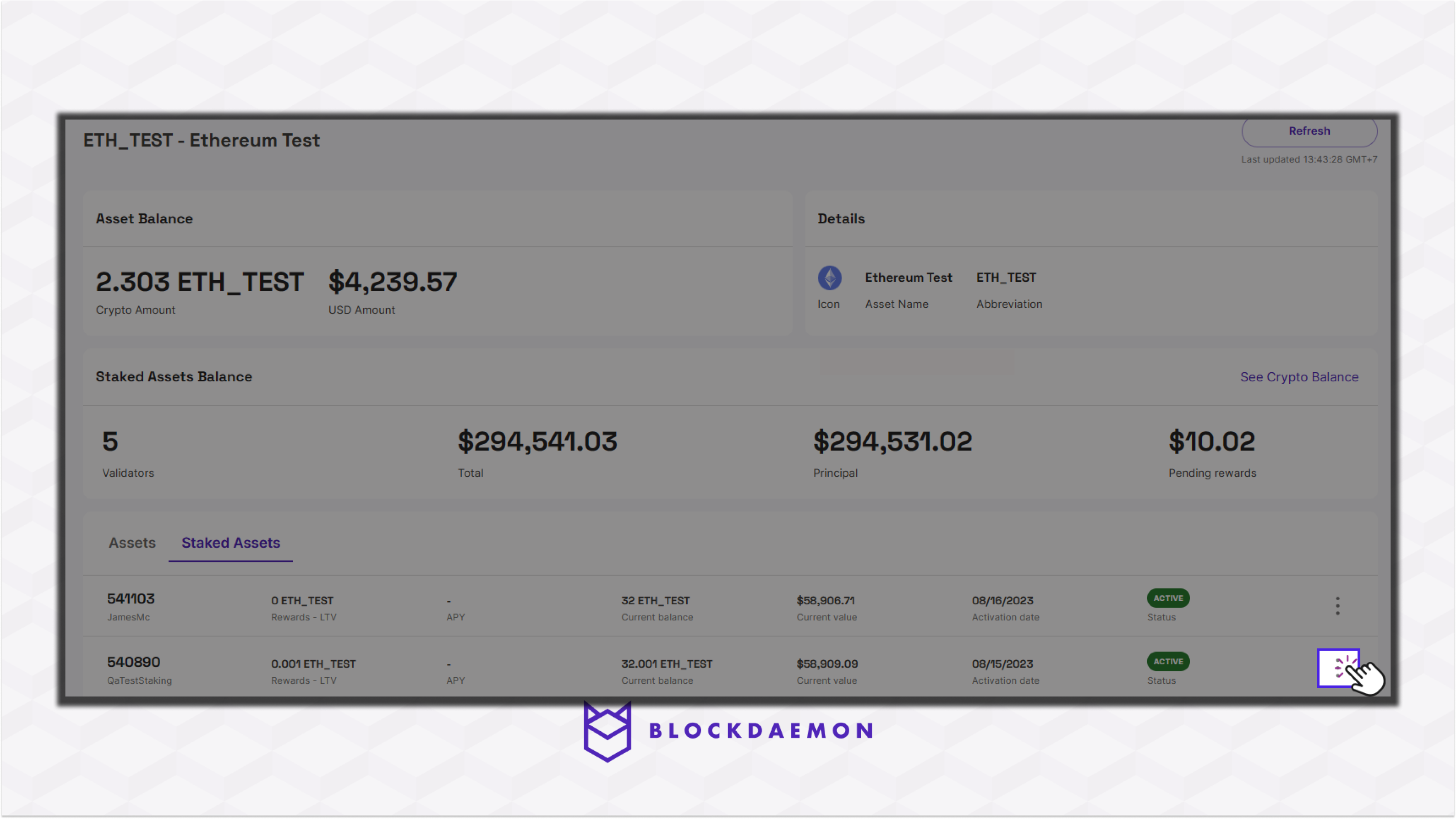 - Once the unstaking operation is approved, the state of the staked assets changes to an exited status.