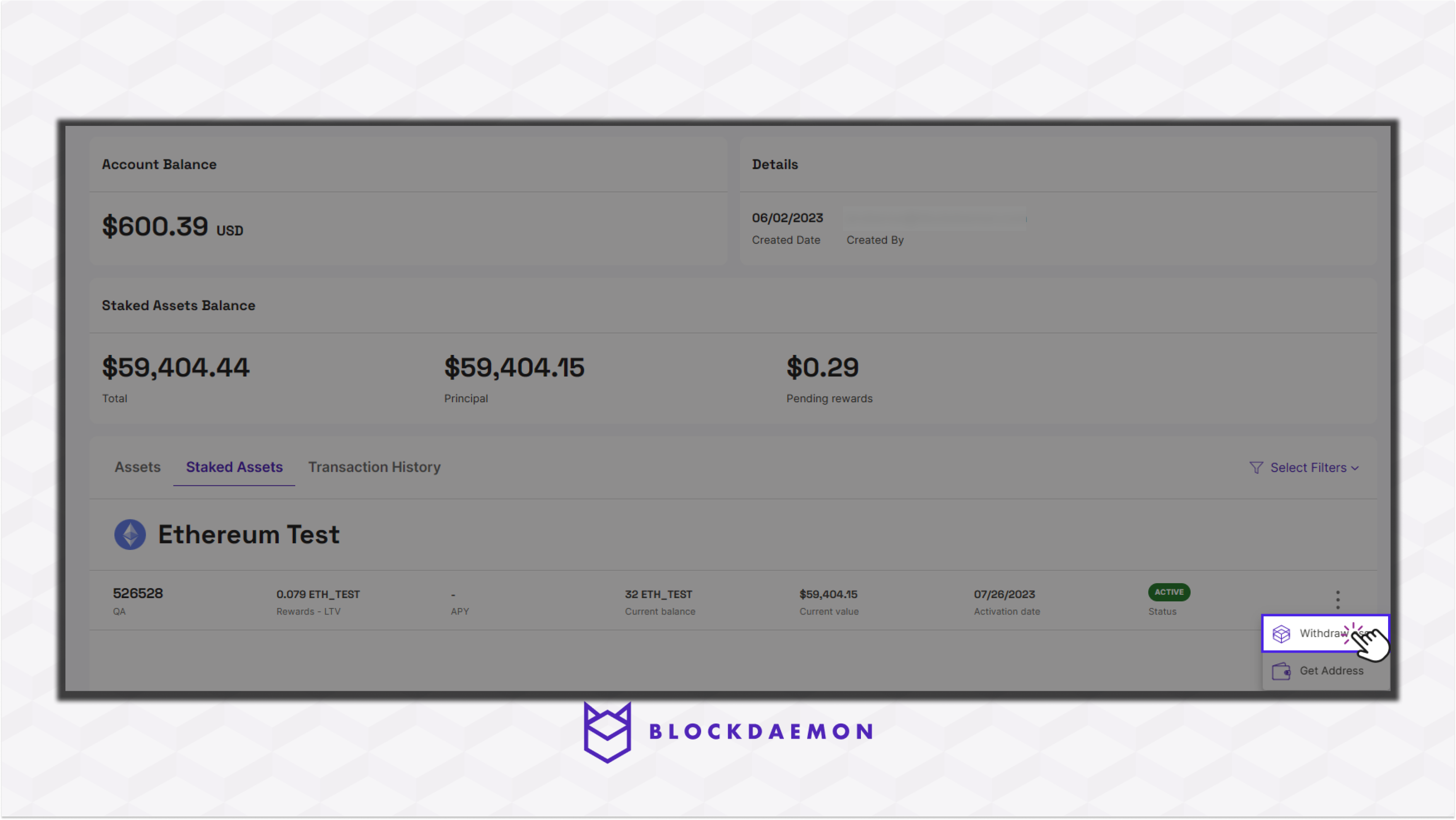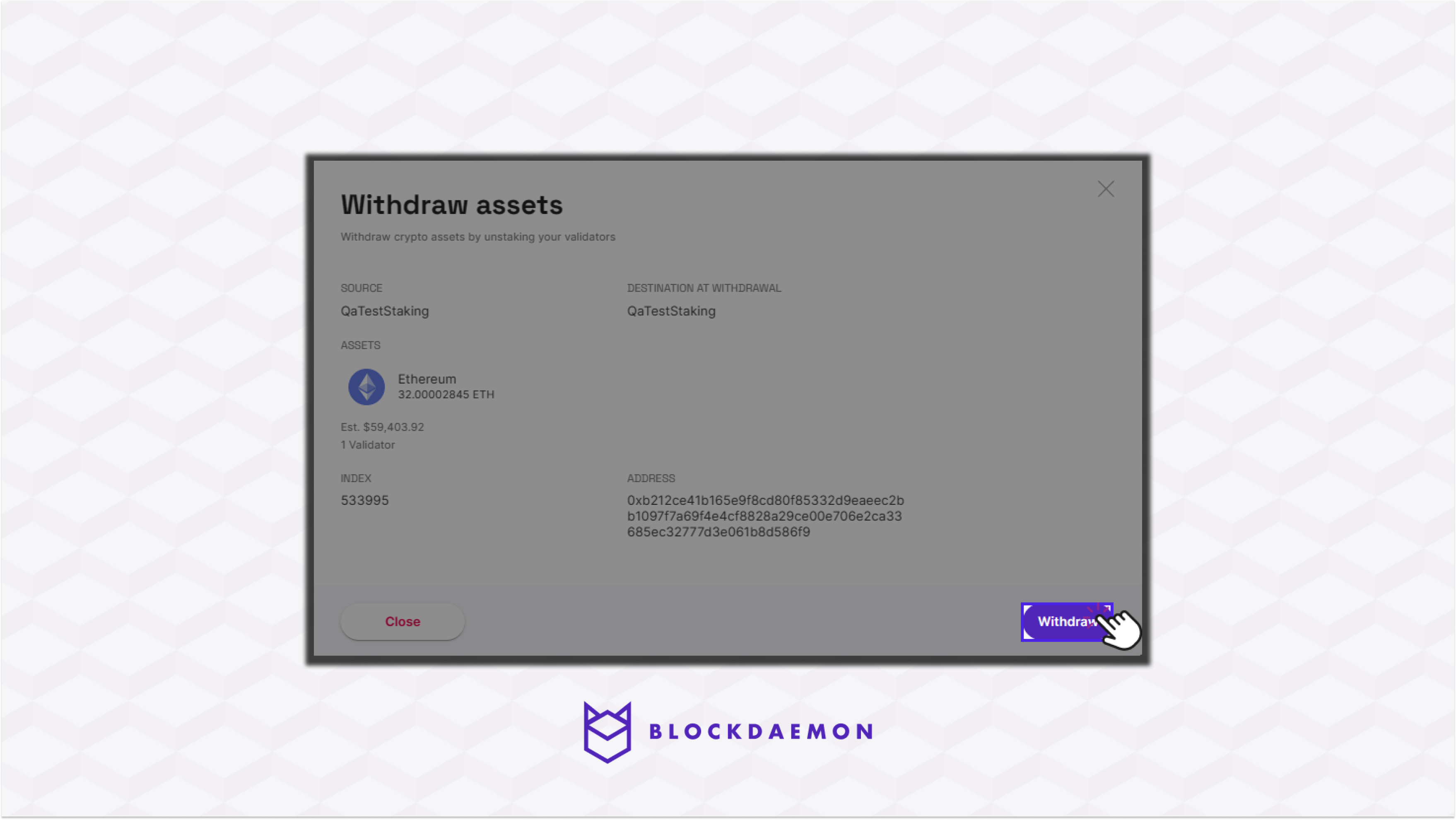 - A confirmation window will pop up. To proceed with the unstaking operation, click the Withdraw button. The status of the staked assets will then be updated to Withdrawal Requested.